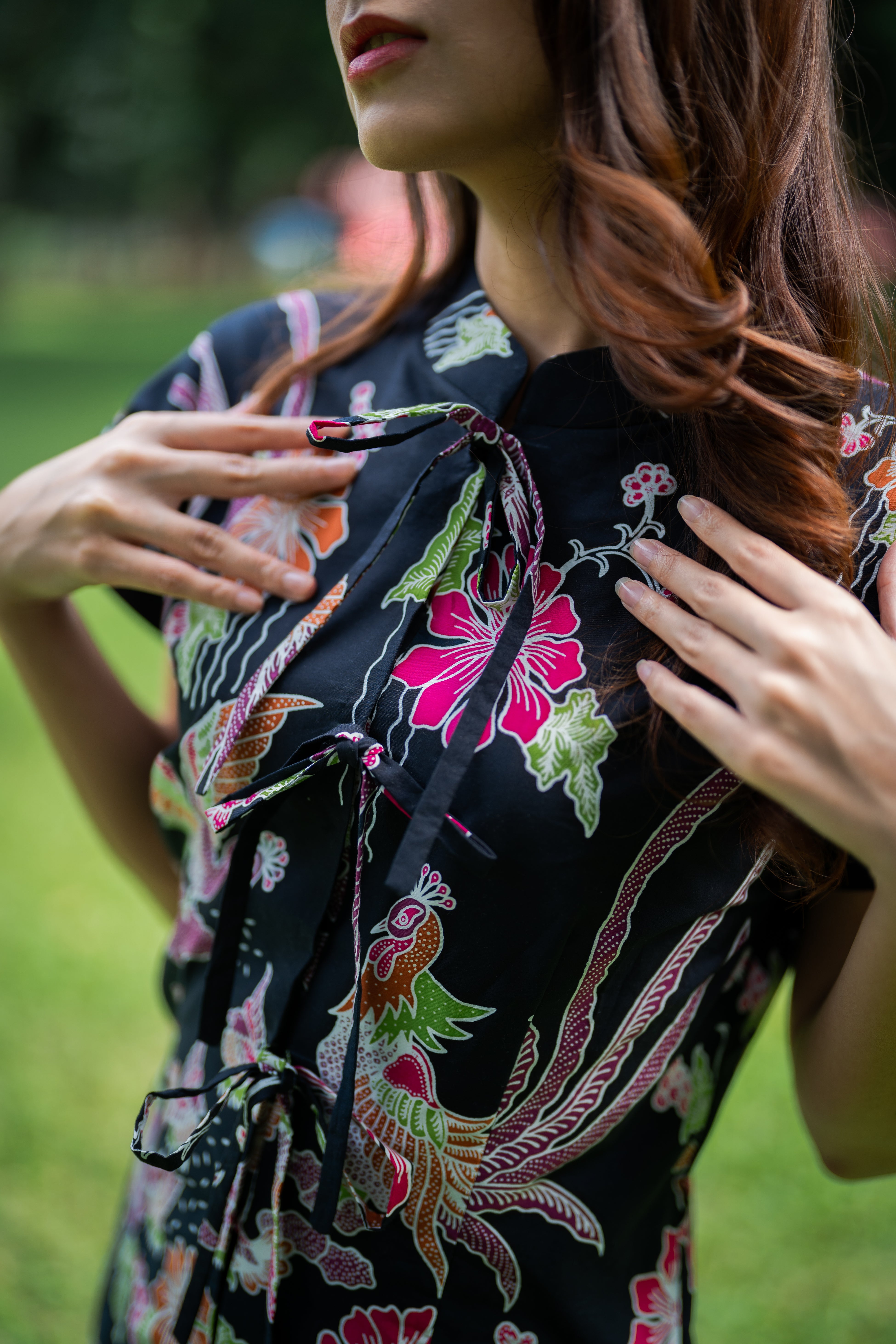 The Sawunggaling takes centre stage in this intricate batik story. The mythical bird is half peacock and half rooster, representing only their best parts: beauty, prosperity, luck and resilience.